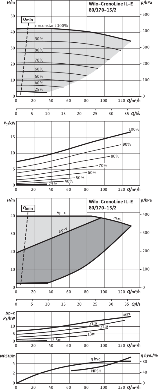 Насос с макс. диаметром рабочего колеса для определения MEIIL80/170-15/2