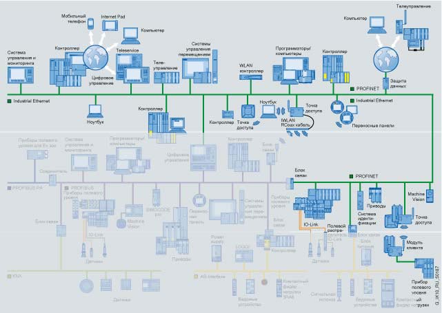 Использование технологии коммутируемых сетей практически снимает ограничения на возможные сферы применения этой сети. Дополнительно Industrial Ethernet позволяет использовать беспроводный обмен данными, что существенно упрощает интеграцию подобных решений в существующие сети. Через беспроводные сети можно получать доступ к информации в Internet/ Intranet в любое время и из любого места.