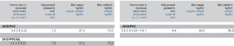 0,22 mm2; PELON / 1,00 mm2; ПВХ пластикат |