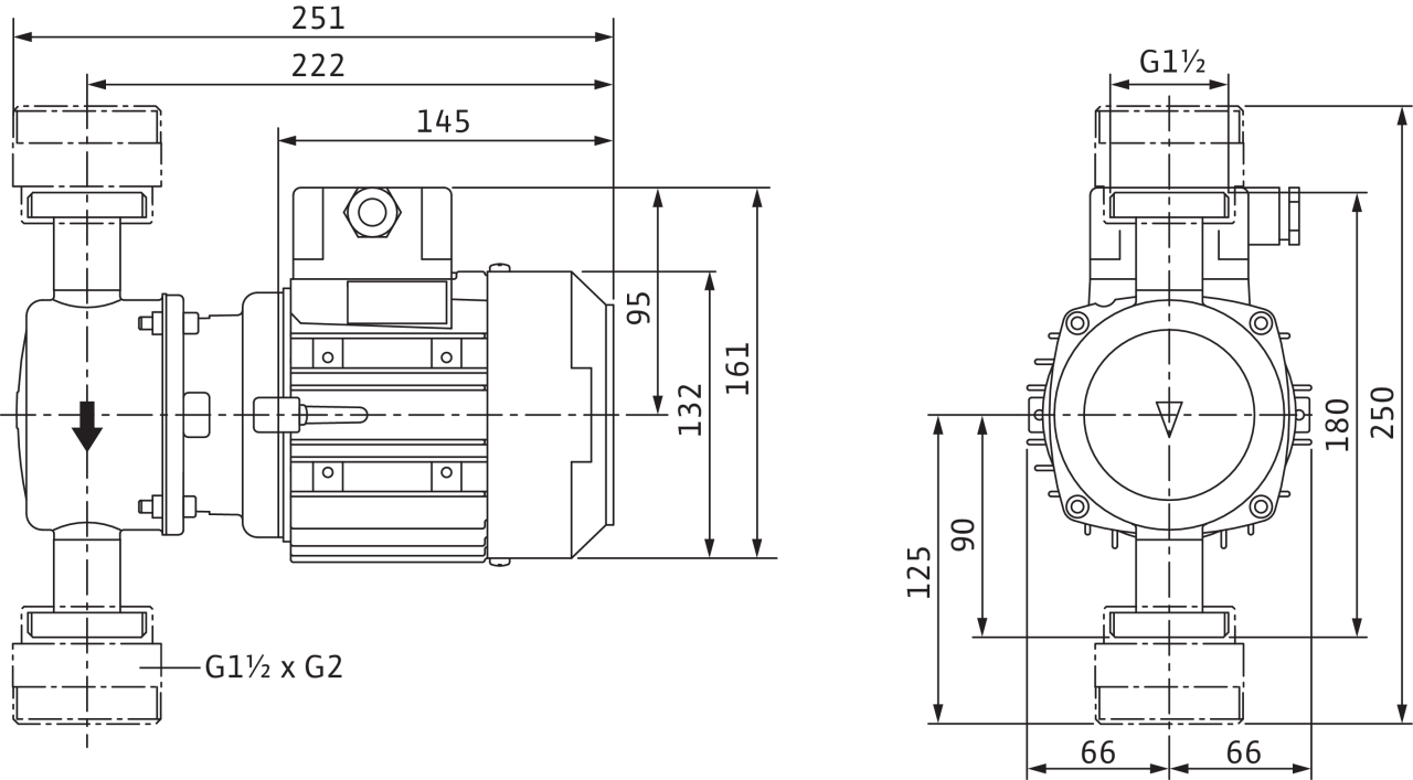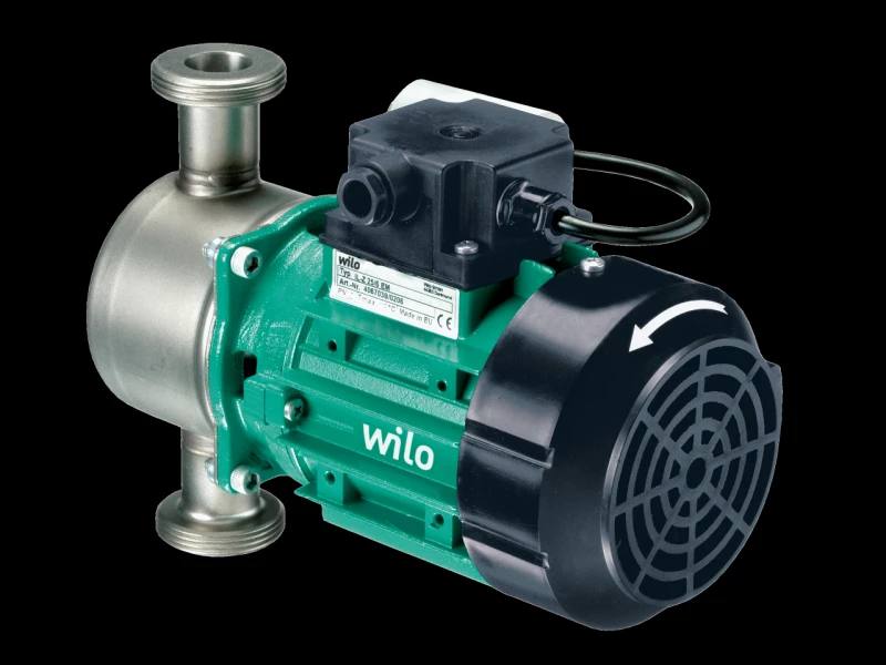 Одноступенчатый центробежный насос с сухим ротором в исполнении Inline для установки в трубах с корпусом насоса из нержавеющей стали.