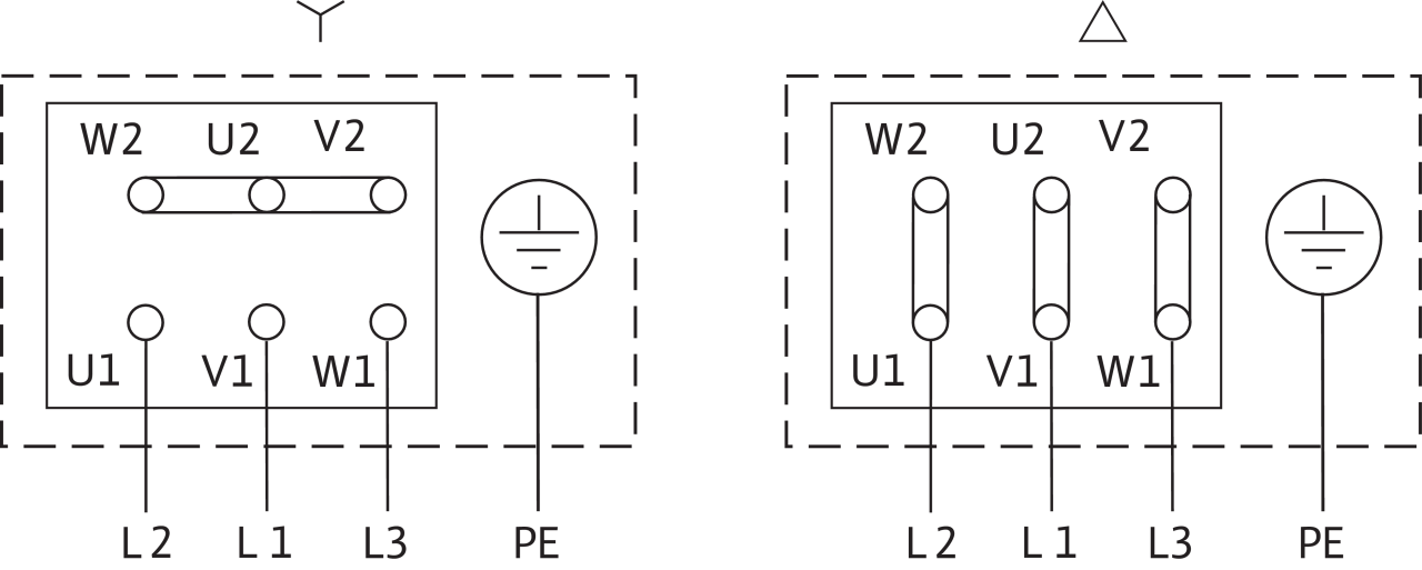 | Обмотка мотора мощностью от 4 кВт | 230 V Δ/400 V Y, 50 Hz |