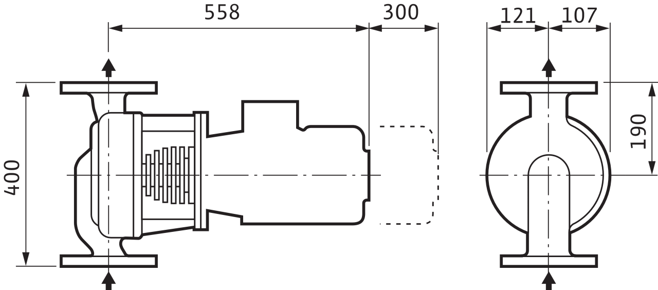 Одноступенчатый центробежный насос с сухим ротором линейного типа для эксплуатации с особенно горячими средами. Трехфазный электродвигатель с неразъемным валом и специальным промежуточным корпусом для установки корпуса с ребрами охлаждения для скользящего торцового уплотнения. Эта серия предназначена для установки в трубах с горизонтальным валом электродвигателя/насоса.