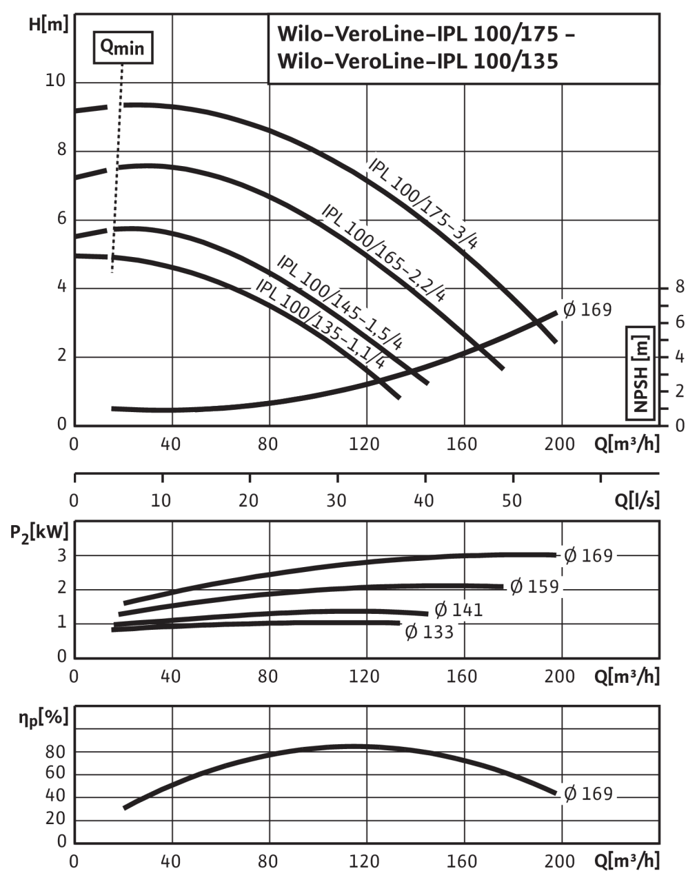Насос с макс. диаметром рабочего колеса для определения MEIIPL100/175-3/4