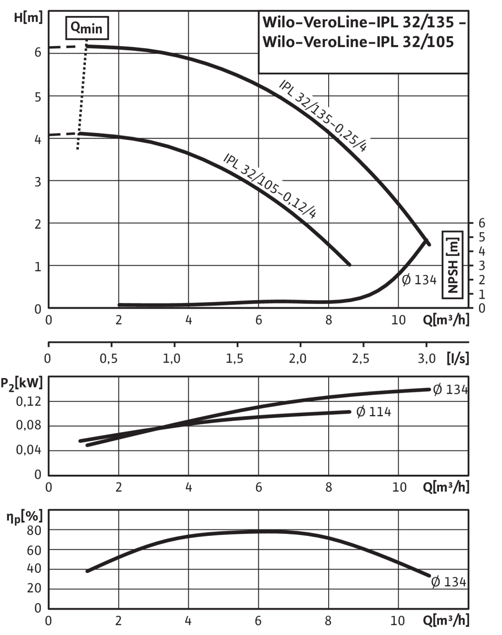 Насос с макс. диаметром рабочего колеса для определения MEIIPL32/135-0,25/4