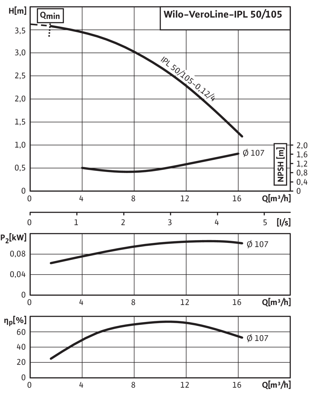 Насос с макс. диаметром рабочего колеса для определения MEIIPL50/105-0,12/4