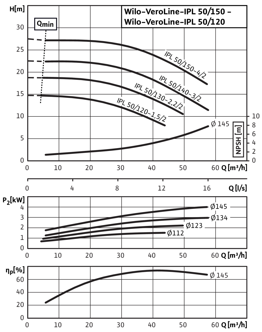 Насос с макс. диаметром рабочего колеса для определения MEIIPL50/150-4/2
