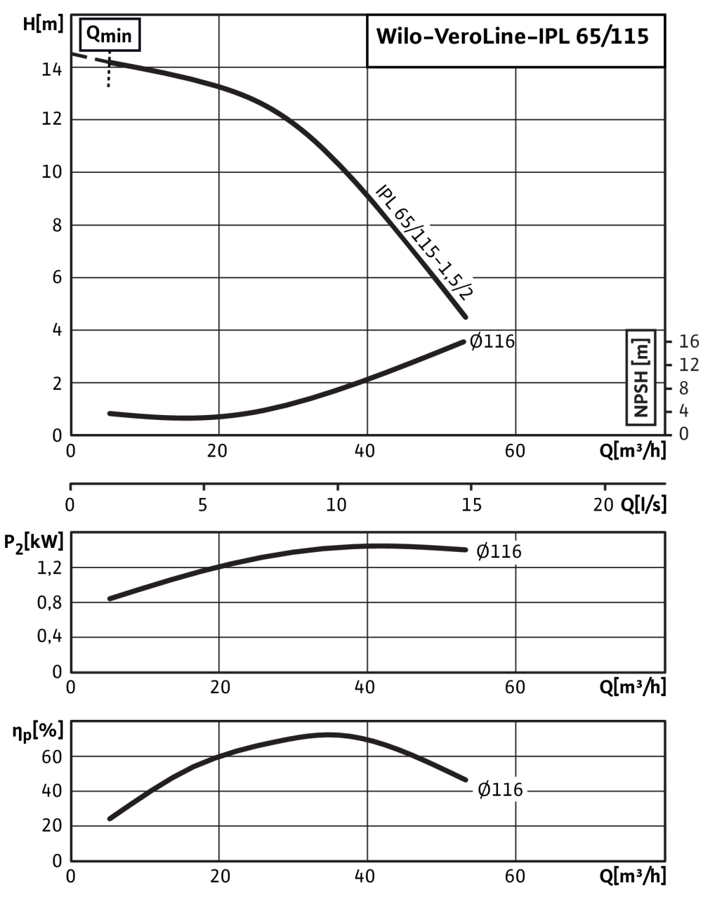 Насос с макс. диаметром рабочего колеса для определения MEIIPL65/115-1,5/2