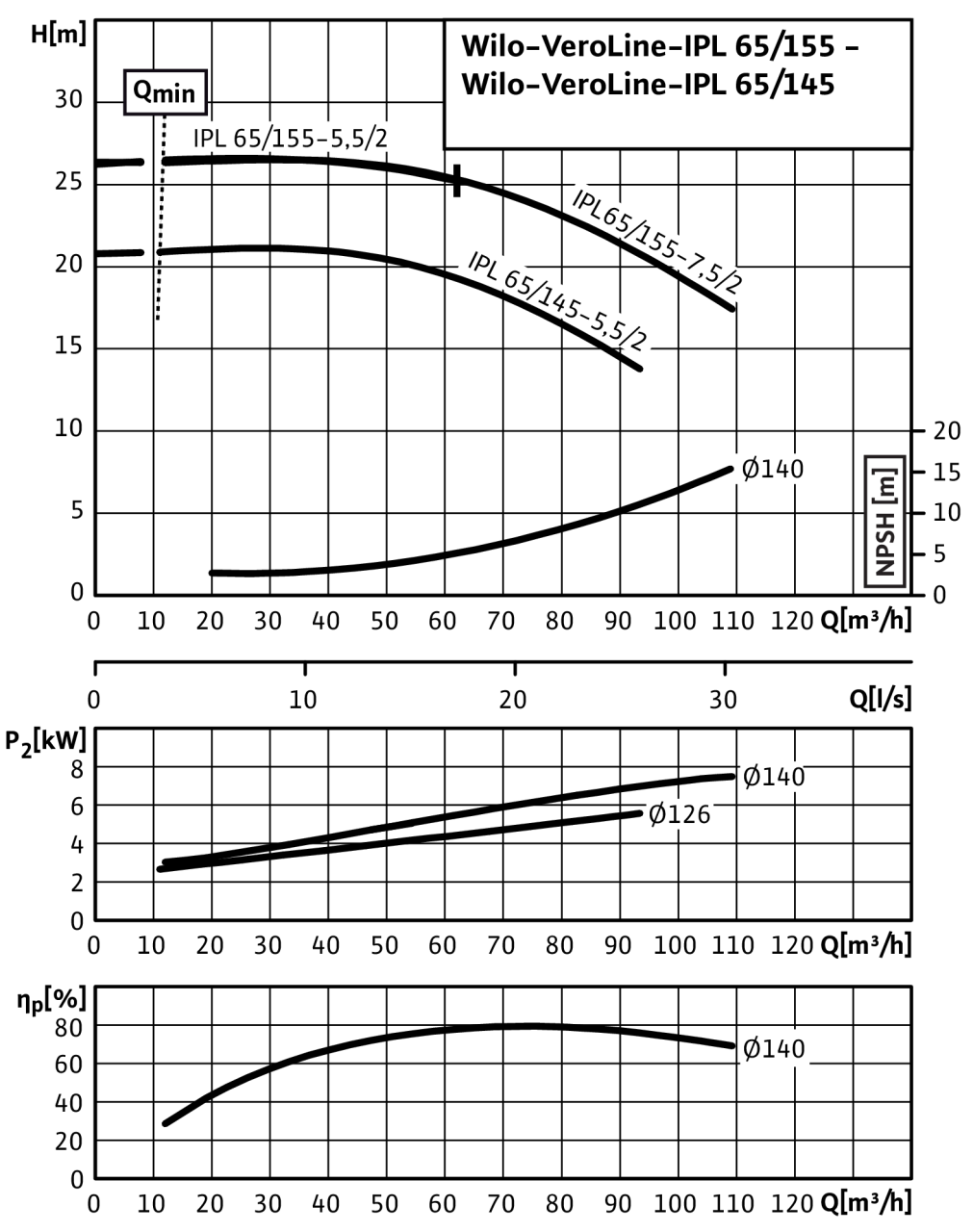 Насос с макс. диаметром рабочего колеса для определения MEIIPL65/155-7,5/2