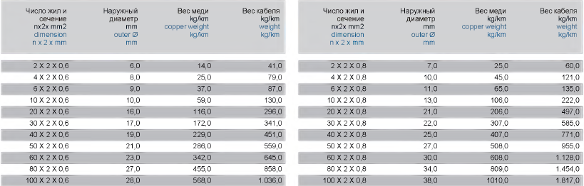 шлейф: 0,6 макс. 130 Q/km; 0,8 макс. 73,2 Q/k |