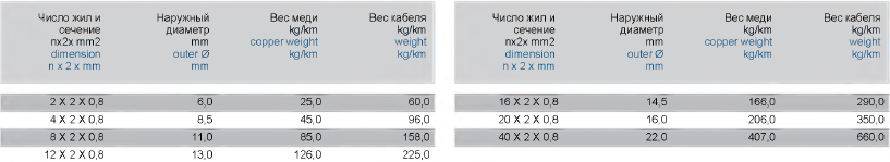 жила/жила: 500 V; жила/экран: 2 kV |
