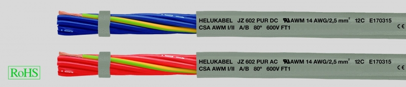 - Кабель со специальной PUR-оболочкой в соответствии с UL CSA AWM I/II A/B тип 20939 (материал оболочки) и CSA