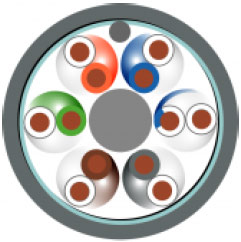 Кабель контроля и пожарной сигнализации для внутренней прокладки. Кабель состоит из шести проводников 20 AWG, свитых в пары, помещенных в общий экран из алюминиевой фольги и защищенных оболочкой из огнестойкого ПВХ.