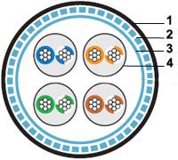 Кабель интерфейса RS-422/485, 4x2x24 AWG SFTP, 120 Ом, в ПВХ-оболочке, для эксплуатации в расширенном диапазоне температур |