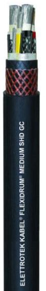 Кабели производства компании Elettrotek Kabel серии FLEXIDRUM MEDIUM SHD GC, обладают превосходными электрическими и механическими характеристиками, выдерживают высокие уровни нагрузок, при этом располагают оптимальным соотношением гибкости и упругости. Кабели данного типа, имеют жесткую поверхность с высокой износостойкостью.