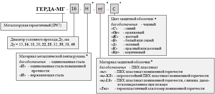 МЕТАЛЛОРУКАВ ГЕРМЕТИЧНЫЙ В ПВХ-ОБОЛОЧКЕ, С СОЕДИНИТЕЛЯМИ ГЕРДА GERDA ГЕРДА-МГ ТУ 4833-011-76960731-2008
