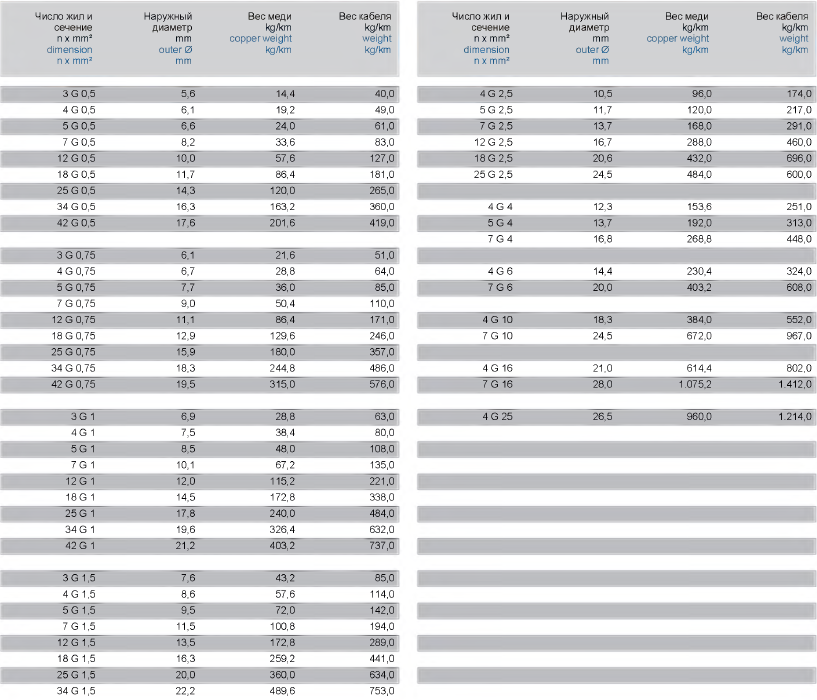 до 0,75 mm2 Uo/U 300/500 V; от 1 mm2 Uo/U 500/750 V |