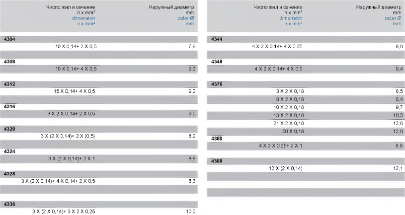 4320, 4324, 4328, 4336, 4388: пары экранированные медной оплеткой, ПВХ |