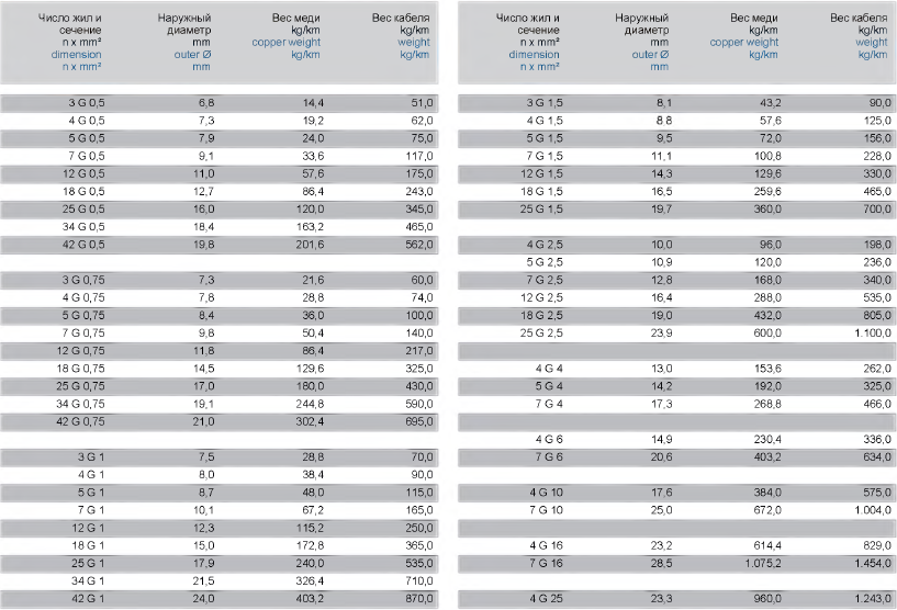 до 0,75 mm2 2.000 V; от 1 mm2 3.000 V |