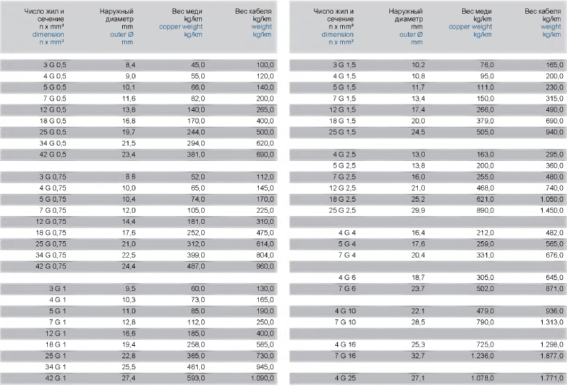 до 0,75 mm2 2.000 V; от 1 mm2 3.000 V |