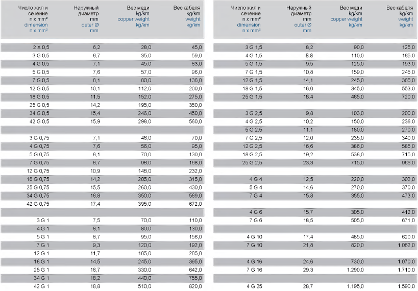 до 0,75 mm2 2.000 V; от 1 mm2 3.000 V |