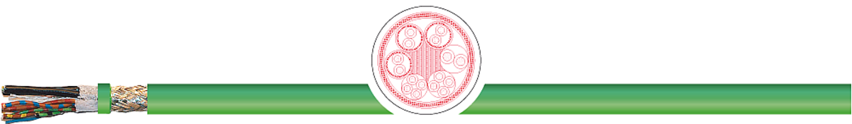 Экранированный кабель с малой ёмкостью обратной связи, как кабель для подключения энкодера, преобразователя, датчиков скорости, как сигнальный, системный кабель для ЭМС-совместимости в станкостроении, машиностроении а также в области контроля и автоматизации для нормальных электрических и легких, средних механических требований.