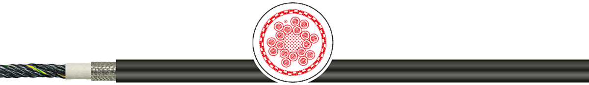 | Общая скрутка | ≤ 11 жил скручены в слои, ≥ 12 жил скрутка в пучки вокруг центрального несущего элемента |
