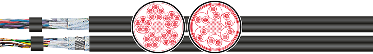 Кабели для передачи данных в робототехнике для сложных особо гибких движений в промышленных применениях (напр. буксируемые цепи, роботы, погрузочно-разгрузочкая техника, конвейерные системы, станки, автоматизированные производственные системы итд).