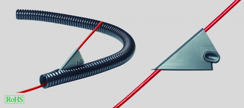 Quick and simple insertion of lines into splitted conduits, resp. cable chain openings