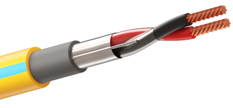 Технические характеристики (краткие) Класс медных токопроводящих жил (по ГОСТ 22483): однопроволочные – 1 класс, многопроволочные «мж» – 3 или 4 класс, кабелей повышенной гибкости «Г» – 5 класс Номинальное сечение токопроводящей жилы: 0,12 мм²; 0,20 мм²; 0,35 мм²; 0,5 мм²; 0,75 мм²; 1,00 мм²; 1,5 мм²; 2,5 мм² Токопроводящие жилы скручены в пары с целью снижения влияния электромагнитных помех. Диапазон применения от –70°С до +250°C Минимальная температура эксплуатации кабелей: –70°С кабели исполнения «ЭХЛ» –60°С кабели исполнения «ХЛ» –50°С кабели обычного исполнения Максимальная температура эксплуатации кабелей: +250°С оболочка и изоляция из высокотемпературной композиции «Y-250» +220°С оболочка и изоляция из фторопласта «Ф» +150°С оболочка и изоляция из термопластичного эластомера повышенной теплостойкости «Т-150» +120°С оболочка и изоляция из термопластичного эластомера «Т» или полиуретана «У» +75°С все остальные кабели Минимальная температура монтажа, не ниже: не ниже минус (20±2) °С – с индексом нг(А)-LS, нг(А)-LSLTx не ниже минус (35±2) °С – с обозначением «ХЛ» не ниже минус (15±2) °С – для остальных типов кабелей Климатическое исполнение В, категория размещения 1-5 (по ГОСТ 15150). Возможно применение во всех макроклиматических районах, включая тропики. Кабели в исполнении «з» – для применения во взрывоопасных зонах – имеют круглую форму и подложку (специальное заполнение), полученную методом экструзии, препятствующую свободному распространению газов под оболочкой. Сопротивление жил постоянному току соответствует ГОСТ 22483 Номинальное напряжение: до ≈380В частотой до 125 кГц Электрическое сопротивление изоляции при температуре t = +20°C, не менее: ПВХ, кремнийорганическая резина, полиуретан, термопластичный эластомер – 100 МОм•км полимерная композиция, не содержащая галогенов – 12 МОм•км высокотемпературная композиция, фторопласт – 250 МОм•км Испытание напряжением в течение 1 мин: между жилами ≈2500В 50Гц между всеми жилами и экраном ≈3000В 50Гц Кабели огнестойкие, сохраняют работоспособность в условиях пожара не менее 180 минут (ПО1 по ГОСТ 31565-2012). Огнестойкость достигается применением слюдосодержащих лент или кремнийорганической резины «Р». Кабели с низкой токсичностью продуктов горения «LTx» – самые пожаробезопасные Значение радиуса изгиба (D – наружный диаметр кабеля): 6D – для небронированных кабелей 12D – для бронированных кабелей