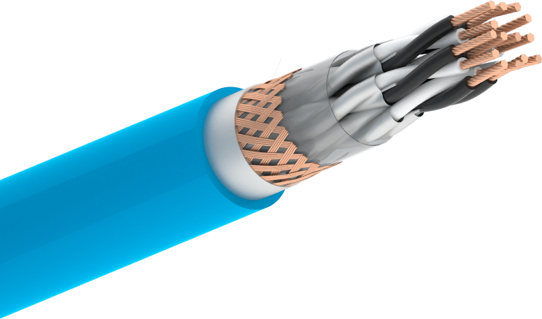 Кабель с токопроводящими жилами из медных проволок, с изоляцией и оболочкой из полимерных материалов, соответствующих требуемому показателю пожарной опасности, с индивидуально экранированными элементами, с общим экраном в виде оплетки из медных проволок, без брони, с круглым поперечным сечением и подложкой, полученной методом экструзии, и любыми негигроскопичными заполнителями. Кабель соответствует требованиям п.9.3 ГОСТ IEC 60079-14-2013 «Взрывоопасные среды. Часть 14. Проектирование, выбор и монтаж электроустановок». Технические параметры: Номинальное сечение токопроводящих жил кабелей, мм2: 0,35; 0,5; 0,75; 1,0; 1,2; 1,5; 2,5; 4,0; 6,0 Число жил, пар, троек, четверок: 1 – 65 По согласованию с предприятием-разработчиком допускается расширение номенклатуры кабелей по сечению и классу жил, по числу жил, пар, троек и четверок. Состав жил кабелей: изолированные жилы (одиночные жилы), пример: КИМЭИЭВ-знг(А)-LS 4×1,0; пары изолированных жил (витые пары), пример: КИМЭИЭВ-знг(А)-LS 4x2x1,0; тройки изолированных жил (триады), пример: КИМЭИЭВ-знг(А)-LS 7x3x1,0; четверки изолированных жил (звездные четверки), пример: КИМЭИЭВ-знг(А)-LS 7x4x1,0 Модификации: кабель КИМЭИЭВ-з – без обозначения показателя пожарной опасности – с изоляцией и оболочкой из поливинилхлоридного пластиката, не распространяющий горение при одиночной прокладке. кабель КИМЭИЭВ-знг(А) – с изоляцией из поливинилхлоридного пластиката, с оболочкой из полимерного материала пониженной горючести, не распространяющий горение при групповой прокладке по категории А. кабель КИМЭИЭВ-знг(А)-LS – с изоляцией и оболочкой из полимерных материалов пониженной пожароопасности, с пониженным дымо- и газовыделением, не распространяющий горение при групповой прокладке по категории А. кабель КИМЭИЭП-знг(А)-HF – с изоляцией и оболочкой из полимерных компаундов, не содержащих галогенов, не распространяющий горение при групповой прокладке по категории А и не выделяющий коррозионно-активных газообразных продуктов при горении и тлении. кабель КИМЭИЭВ-знг(А)-FRLS – с огнестойкой изоляцией, с оболочкой из полимерных материалов пониженной пожароопасности, с пониженным дымо- и газовыделением, не распространяющий горение при групповой прокладке по категории А, огнестойкий. кабель КИМЭИЭП-знг(А)-FRHF – с огнестойкой изоляцией, с оболочкой из полимерных компаундов, не содержащих галогенов, не распространяющий горение при групповой прокладке по категории А, не выделяющий коррозионно-активных газообразных продуктов при горении и тлении, огнестойкий. кабель КИМЭИЭВ-знг(А)-LSLTx – с изоляцией и оболочкой из полимерных материалов пониженной пожароопасности, с пониженным дымо- и газовыделением, с низкой токсичностью продуктов горения, не распространяющий горение при групповой прокладке по категории А. кабель КИМЭИЭП-знг(А)-HFLTx – с изоляцией и оболочкой из полимерных компаундов, не содержащих галогенов, не распространяющий горение при групповой прокладке по категории А и не выделяющий коррозионно-активных газообразных продуктов при горении и тлении, с низкой токсичностью продуктов горения. кабель КИМЭИЭВ-знг(А)-FRLSLTx – с огнестойкой изоляцией, с оболочкой из полимерных материалов пониженной пожароопасности, с пониженным дымо- и газовыделением, с низкой токсичностью продуктов горения, не распространяющий горение при групповой прокладке по категор