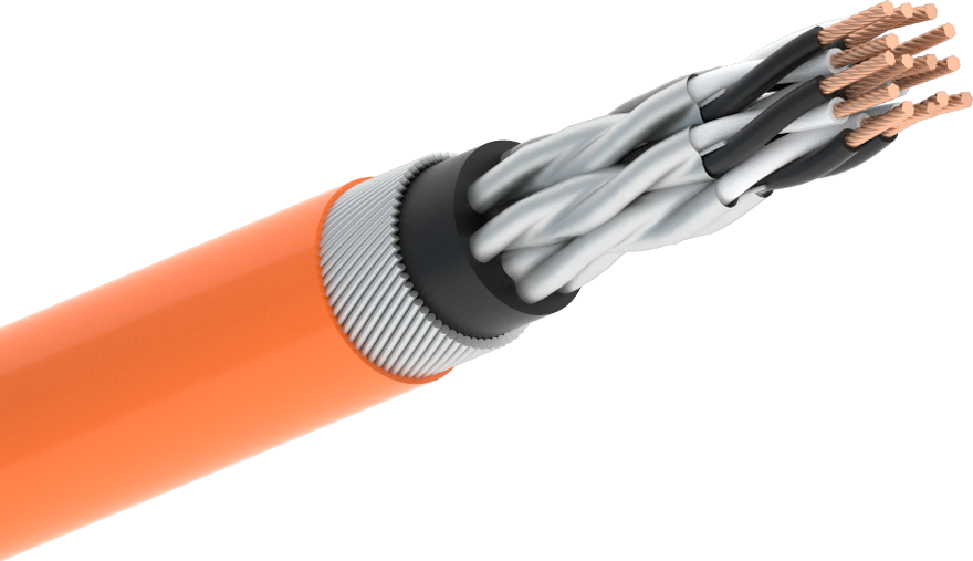 Кабель с токопроводящими жилами из медных проволок, с изоляцией и оболочкой из полимерных материалов, соответствующих требуемому показателю пожарной опасности, с индивидуально экранированными элементами, с экструдированной поясной изоляцией (подложкой), с броней из стальных оцинкованных проволок. Кабель соответствует требованиям п.9.3 ГОСТ IEC 60079-14-2013 «Взрывоопасные среды. Часть 14. Проектирование, выбор и монтаж электроустановок». Технические параметры: Номинальное сечение токопроводящих жил кабелей, мм2: 0,35; 0,5; 0,75; 1,0; 1,2; 1,5; 2,5; 4,0; 6,0 Число жил, пар, троек, четверок: 1 – 65 По согласованию с предприятием-разработчиком допускается расширение номенклатуры кабелей по сечению и классу жил, по числу жил, пар, троек и четверок. Состав жил кабелей: изолированные жилы (одиночные жилы), пример: КИМЭИКВнг(А)-LS 4×1,0; пары изолированных жил (витые пары), пример: КИМЭИКВнг(А)-LS 4x2x1,0; тройки изолированных жил (триады), пример: КИМЭИКВнг(А)-LS 7x3x1,0; четверки изолированных жил (звездные четверки), пример: КИМЭИКВнг(А)-LS 7x4x1,0 Модификации: кабель КИМЭИКВ – без обозначения показателя пожарной опасности – с изоляцией и оболочкой из поливинилхлоридного пластиката, не распространяющий горение при одиночной прокладке. кабель КИМЭИКВнг(А) – с изоляцией из поливинилхлоридного пластиката, с оболочкой из полимерного материала пониженной горючести, не распространяющий горение при групповой прокладке по категории А. кабель КИМЭИКВнг(А)-LS – с изоляцией и оболочкой из полимерных материалов пониженной пожароопасности, с пониженным дымо- и газовыделением, не распространяющий горение при групповой прокладке по категории А. кабель КИМЭИКПнг(А)-HF – с изоляцией и оболочкой из полимерных компаундов, не содержащих галогенов, не распространяющий горение при групповой прокладке по категории А и не выделяющий коррозионно-активных газообразных продуктов при горении и тлении. кабель КИМЭИКВнг(А)-FRLS – с огнестойкой изоляцией, с оболочкой из полимерных материалов пониженной пожароопасности, с пониженным дымо- и газовыделением, не распространяющий горение при групповой прокладке по категории А, огнестойкий. кабель КИМЭИКПнг(А)-FRHF – с огнестойкой изоляцией, с оболочкой из полимерных компаундов, не содержащих галогенов, не распространяющий горение при групповой прокладке по категории А, не выделяющий коррозионно-активных газообразных продуктов при горении и тлении, огнестойкий. кабель КИМЭИКВнг(А)-LSLTx – с изоляцией и оболочкой из полимерных материалов пониженной пожароопасности, с пониженным дымо- и газовыделением, с низкой токсичностью продуктов горения, не распространяющий горение при групповой прокладке по категории А. кабель КИМЭИКПнг(А)-HFLTx – с изоляцией и оболочкой из полимерных компаундов, не содержащих галогенов, не распространяющий горение при групповой прокладке по категории А и не выделяющий коррозионно-активных газообразных продуктов при горении и тлении, с низкой токсичностью продуктов горения. кабель КИМЭИКВнг(А)-FRLSLTx – с огнестойкой изоляцией, с оболочкой из полимерных материалов пониженной пожароопасности, с пониженным дымо- и газовыделением, с низкой токсичностью продуктов горения, не распространяющий горение при групповой прокладке по категории А, огнестойкий. кабель КИМЭИКПнг(А)-FRHFLTx – с огнестойкой изоляцией, с оболочкой из полимерных компаунд