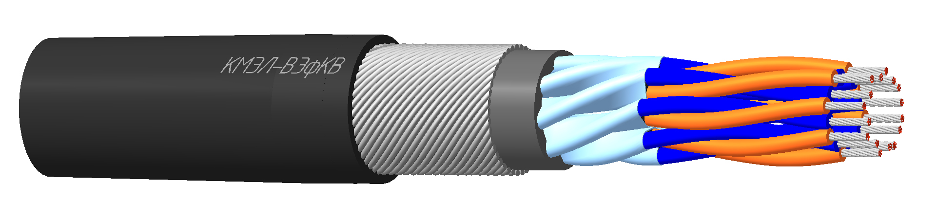 Кабели c медными или медными лужеными токопроводящими жилами, с экраном по изолированной жиле или скрученной паре, тройке, четверке без общего экрана, бронированные стальной оцинкованной проволокой. Кабели монтажные электрические КМЭЛ, предназначены для межприборного монтажа электрических устройств, работающих при номинальном напряжении до 500 В включительно частотой до 400 Гц или постоянном напряжении до 750 В включительно. «М» - медная токопроводящая жила, «без обозначения» - медная луженая токопроводящая жила, «В» - изоляция (и (или) оболочка) из поливинилхлориднго пластиката,«П» - полимерная композиция, не содержащая галогенов,«Пс» - полиэтилен сшитый,«К»- с броней из стальных оцинкованных проволок, «Э» - экран.