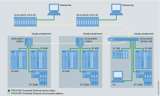 - Построение электрических сетей Industrial Ethernet с линейной, кольцевой или звездообразной топологией. Семь портов Fast Ethernet (10/100 Мбит/с) и три порта гигабитного Ethernet (10/100/1000 Мбит/с).