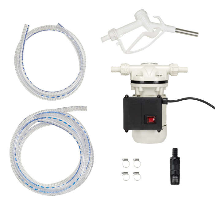 Мембранный насос со встроенным байпасом Выключатель Раздаточный шланг, 6 м, Ду 19 Заборный шланг, 2 м, Ду 19 Обратный клапан с фильтром Механический пистолет для мочевины с шатуном ( ZVMUD )