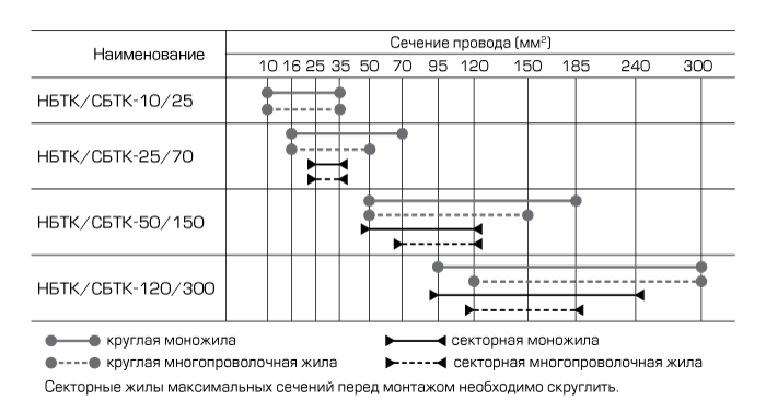 | СБТК-120/300 | 1 | Для сечения жил | 120/ 150/ 185/ 240/ 300 |