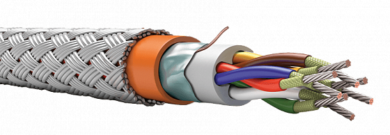Проводник: многопроволочные медные луженые (с индексом Л) жилы сечением от 0,5 до 6,0 мм2, на проводник наложен огнестойкий барьер из двух слюдосодержащих лент.