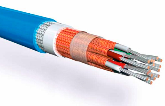Кабель с многопроволочными токопроводящими жилами из медных луженых проволок, с изоляцией и оболочкой из полимерных материалов пониженной пожароопасности, с пониженным дымо- и газовыделением, не распространяющий горение при групповой прокладке по категории А, с пятью индивидуально экранированными парами (экран в виде оплетки или обмотки из медных проволок), с общим экраном в виде оплетки или обмотки из медных проволок, с броней из стальных оцинкованных проволок, с круглым поперечным сечением и подложкой под броней, полученной методом экструзии, с негигроскопичными заполнителями.