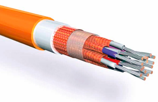 Кабель с многопроволочными токопроводящими жилами из медных луженых проволок, с изоляцией и оболочкой из полимерных материалов пониженной пожароопасности, с пониженным дымо- и газовыделением, не распространяющий горение при групповой прокладке по категории А, с пятью индивидуально экранированными тройками (экран в виде оплетки или обмотки из медных проволок), с общим экраном в виде оплетки или обмотки из медных проволок, без брони, с круглым поперечным сечением и подложкой под оболочкой, полученной методом экструзии, с негигроскопичными заполнителями.