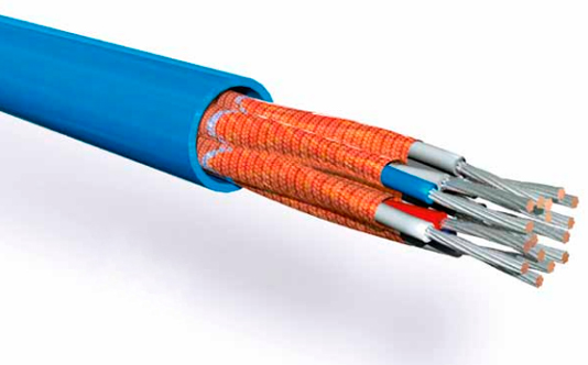 Применение: Кабель с токопроводящими жилами из медных луженых проволок, с изоляцией и оболочкой из полимерных материалов, соответствующих требуемому показате- лю пожарной опасности, с индивидуально экранированными элементами (экран в виде оплетки или обмотки из медных проволок), без брони.