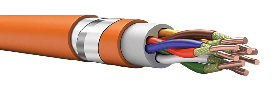 Проводник: однопроволочные медные жилы сечением от 0,5 до 6,0 мм2, на проводник наложен огнестойкий барьер из двух слюдосодержащих лент.