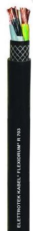 Кабели производства компании Elettrotek Kabel серии FLEXIDRUM R 703, обладают превосходными электрическими и механическими характеристиками, выдерживают высокие уровни нагрузок, при этом располагают оптимальным соотношением гибкости и упругости. Кабели данного типа, имеют жёсткую поверхность с высокой износостойкостью.