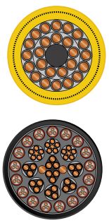 Внешняя оболочка: специальное соединение на базе полиуретана (PUR), черный или желтый цвет;
