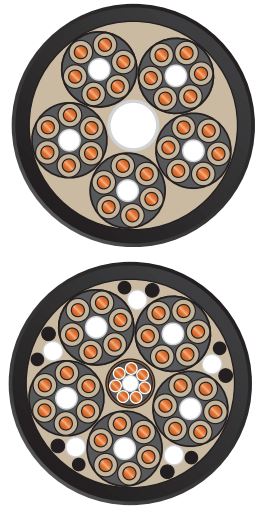 Скрутка: жилы уложены в пучки с опорным элементом, повив пучков вокруг центрального опорного элемента;