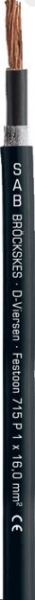 Гибридные кабель SAB Broeckskes серии Festoon 715 P — Festoon 715 P — это высокопрочный кабель с PUR-оболочкой для гибкого применения при высоких механических нагрузках,например для кабельных тележек. Оболочка не содержит галогенов и устойчива к маслам. Кабель с общим медным экраном обладает очень хорошими характеристиками ЭМС. Высокая скорость намотки – 240 м/мин.