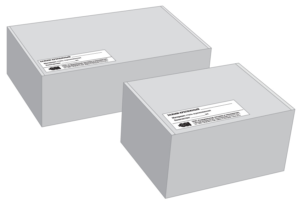 Зажимы крепежные упаковываются в коробки по 30–50 шт. Пример обозначения: Зажим крепежный БРН.1-25 Ц (упак. 50 шт.) |
