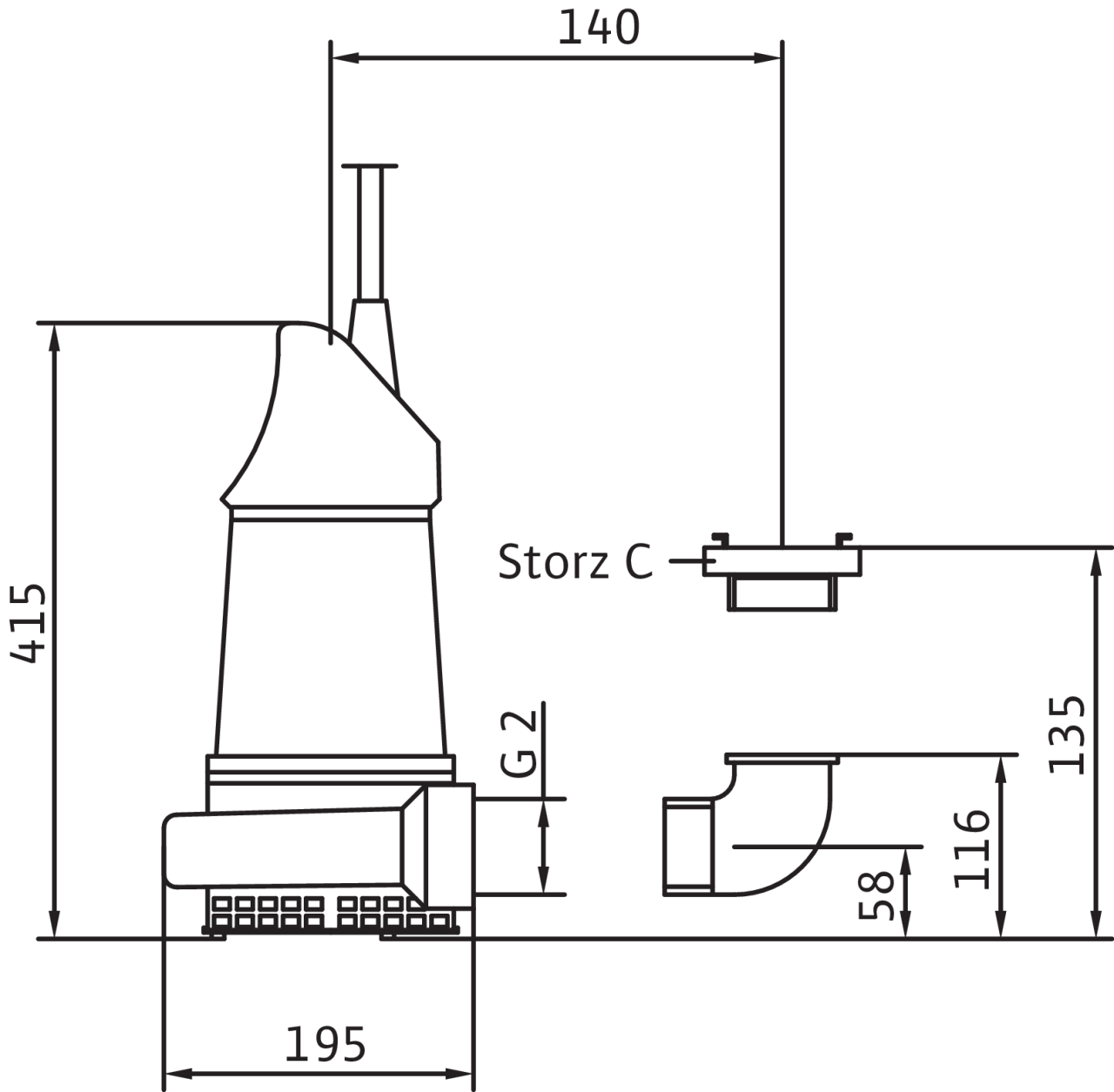 Полностью погружной дренажный насос для вертикальной установки в погруженном состоянии для перекачивания загрязненной или содержащей песок воды. Гидравлический корпус и рабочее колесо из серого чугуна, корпус электродвигателя из алюминия. Вариант исполнения GG полностью выполнен из серого чугуна; по желанию заказчика на корпус может быть нанесено керамическое покрытие. Напорный патрубок с вертикальным патрубком напорного слива и муфтой Storz. Самоохлаждающиеся электродвигатели с камерой уплотнений, в исполнении для однофазного тока, разъемным соединительным кабелем со штекером с защитным контактом и конденсатором. Герметизация камеры уплотнений осуществляется с помощью двух скользящих торцевых уплотнений для обоих направлений вращения. Серия без ограничений подходит для эксплуатации в режиме с подсосом воздуха.