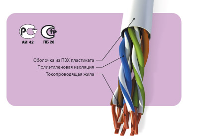 Кабели состоят из медных однопроволочных токопроводящих изолированных полиэтиленом жил, скрученных между собой в пары. В 2- и 4-парных кабелях пары скручены между собой. Поверх скрученных пар наложена оболочка из ПВХ пластиката серого цвета.