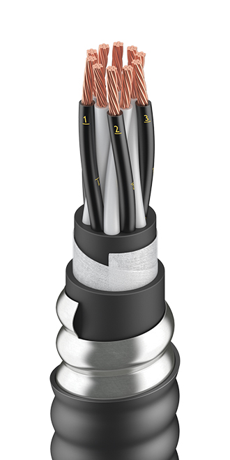 Кабель для систем промышленной автоматики, с токопроводящими жилами из медных проволок с изоляцией и оболочкой из полимерных материалов, без экранов, с герметичной гофрированной металлической бронёй.