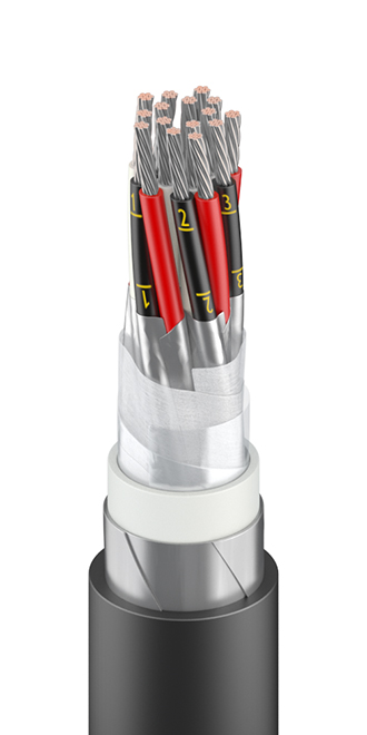 Кабель для систем промышленной автоматики, с токопроводящими жилами из медных лужёных проволок с изоляцией и оболочкой из полимерных материалов, с индивидуально экранированными элементами и броней из стальных оцинкованных лент.