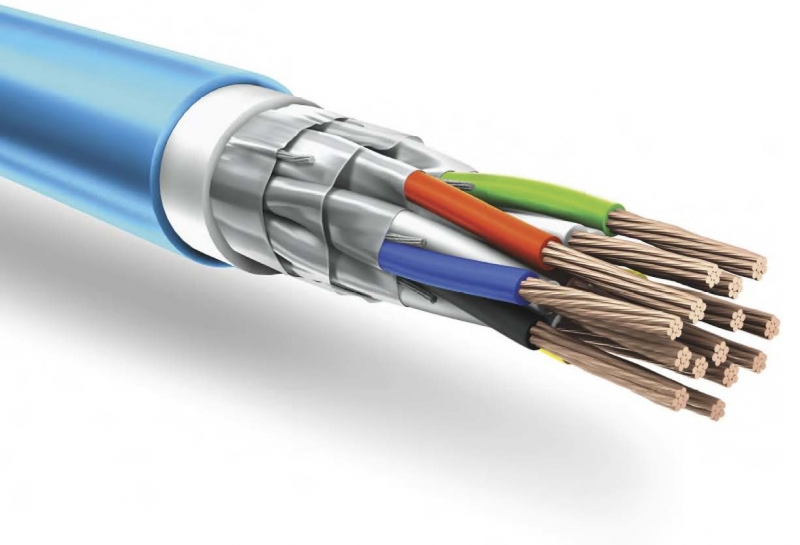 Кабель с многопроволочными токопроводящими жилами из медных луженых проволок, с изоляцией и оболочкой из полимерных компаундов, не содержащих галогенов, не распространяющий горение при групповой прокладке по категории А и не выделяющий коррозионно-активных газообразных продуктов при горении и тлении, с семью индивидуально экранированными фольгированным материалом парами, с общим экраном из фольгированного материала, без брони, с круглым поперечным сечением и подложкой, полученной методом экструзии, и любыми негигроскопичными заполнителями.